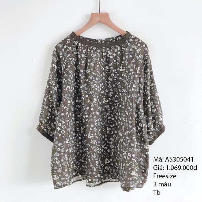 - Áo sơ mi tay lửng cổ tròn in hoa - AS305041