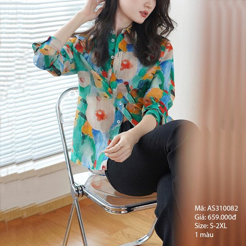 - Áo sơ mi dài tay in hoa đa sắc màu - AS310082