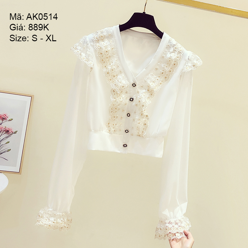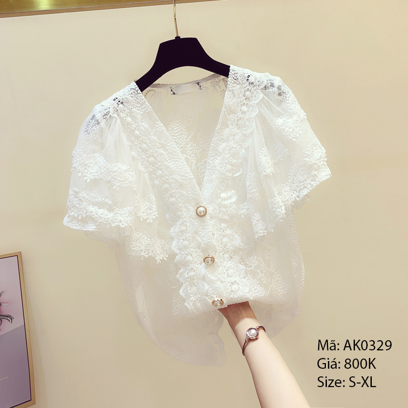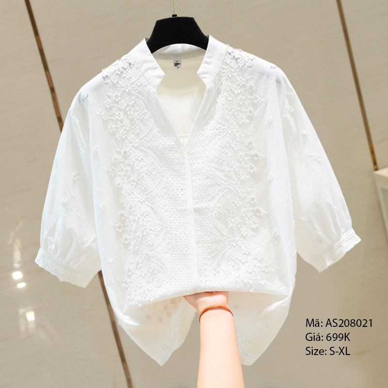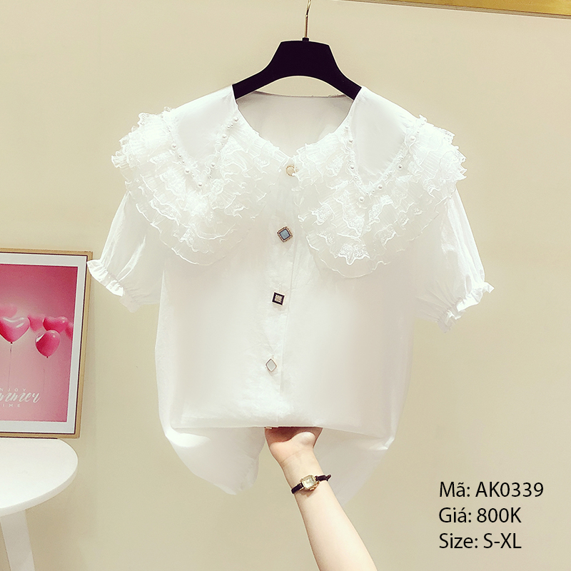 Áo sơ mi ngắn tay cổ ren - AS402235 Chất liệu cotton TOÀN BỘ SẢN PHẨM CỦA AKAY LÀ HÀNG ORDER KHÁCH HÀNG ĐẶT HÀNG VUI LÒNG CHỜ NHẬN HÀNG SAU 12 - 15 NGÀY
