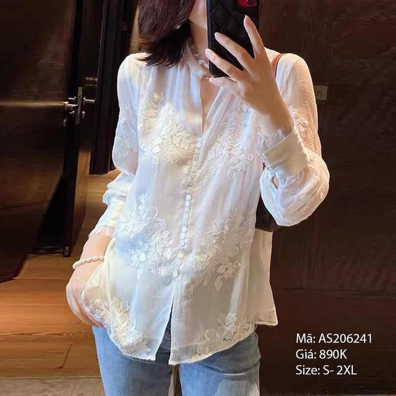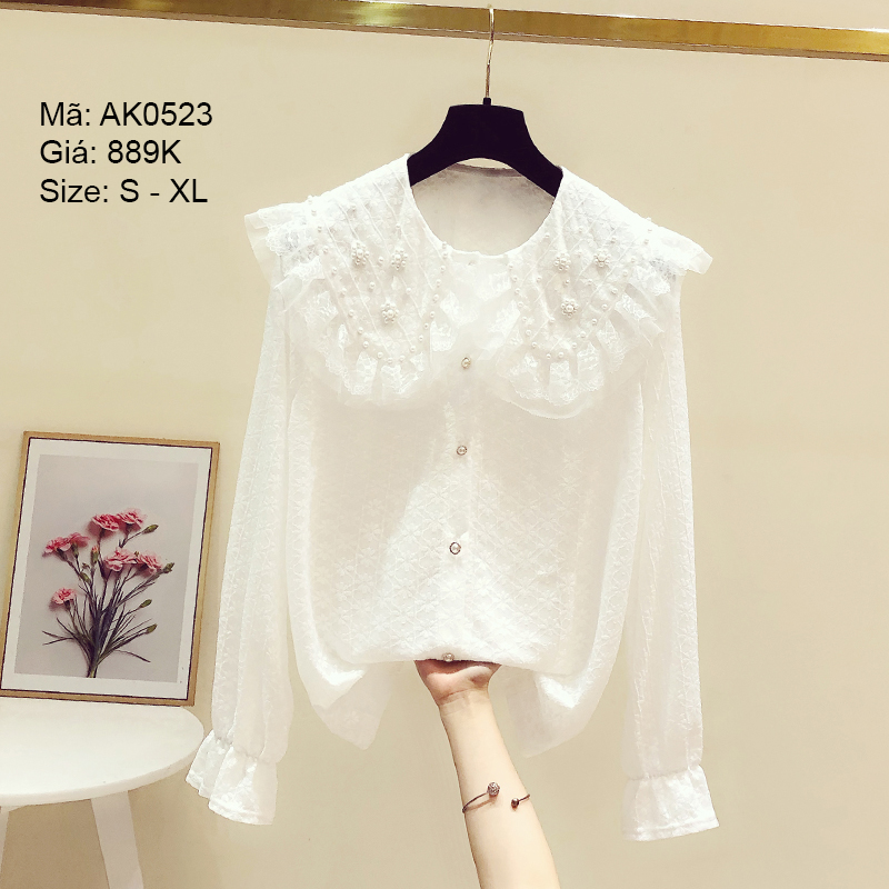 Áo sơ mi cổ đức tay bồng - AS404185 Chất liệu cotton TOÀN BỘ SẢN PHẨM CỦA AKAY LÀ HÀNG ORDER KHÁCH HÀNG ĐẶT HÀNG VUI LÒNG CHỜ NHẬN HÀNG SAU 12 - 15 NGÀY