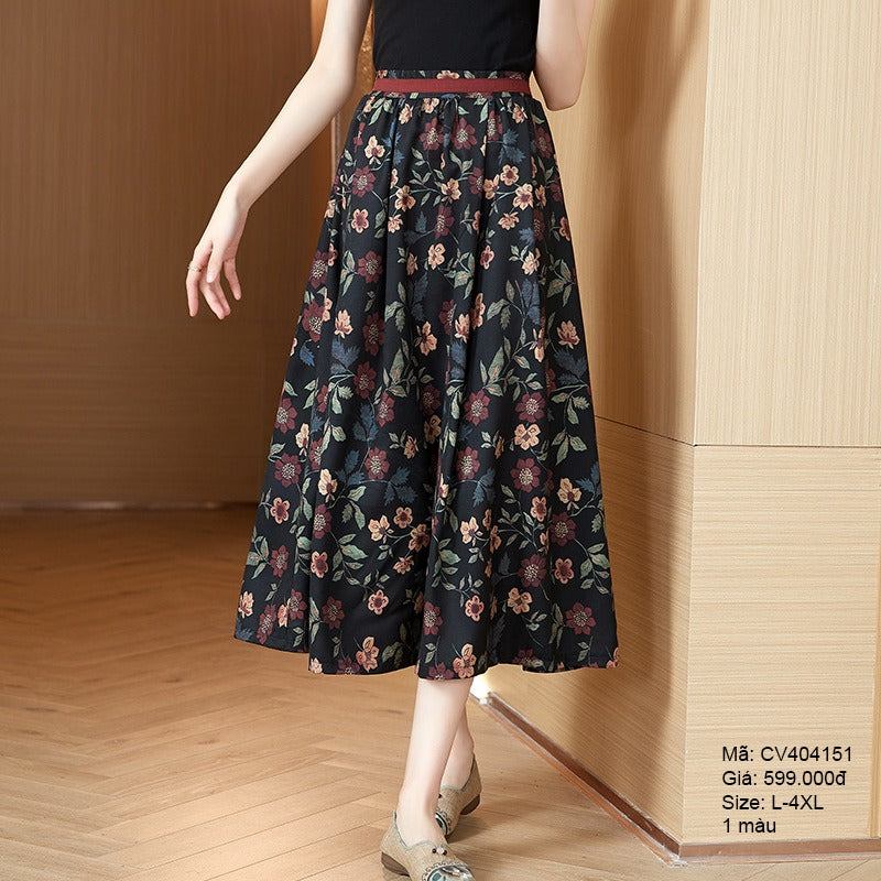 Chân váy chữ A in hoa lá - CV404151
