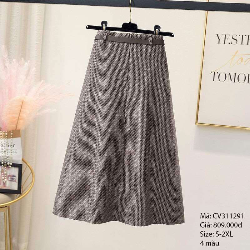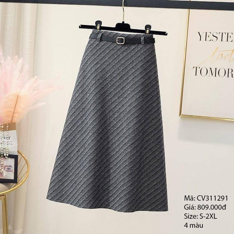 Chân váy dạ chữ A kẻ sọc cao cấp- CV311291