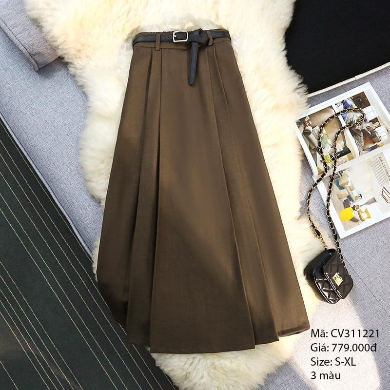 Chân váy form chữ A xếp ly đối xứng kèm dây lưng - CV311221