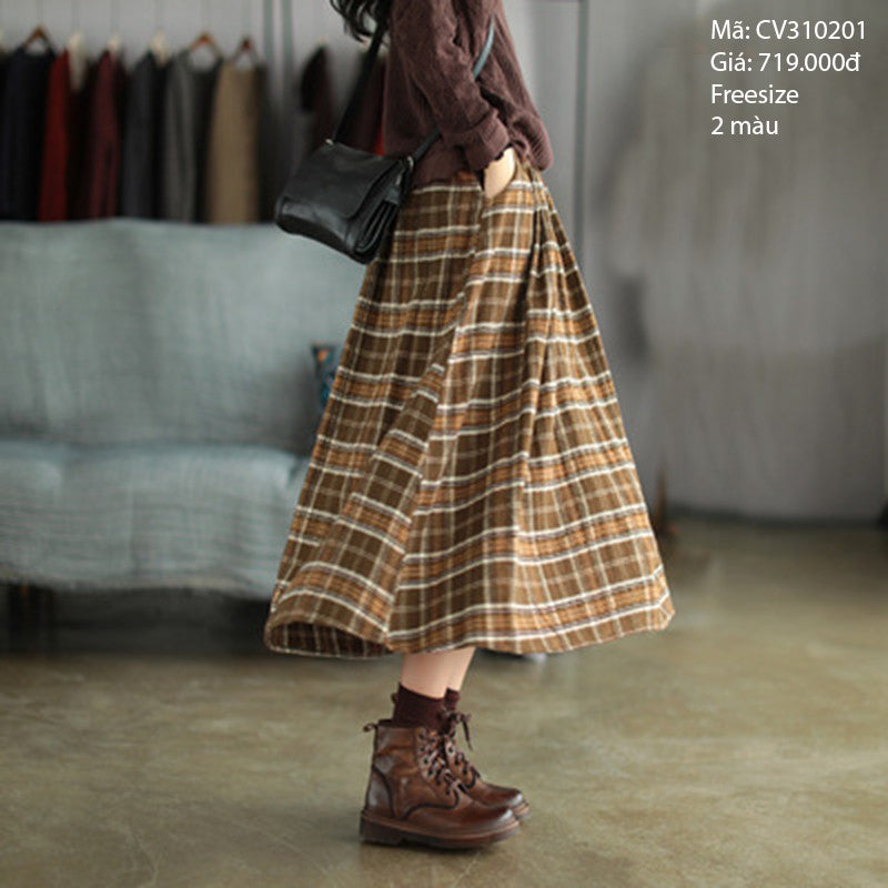 Chân váy kẻ sọc caro cạp chun- CV310201