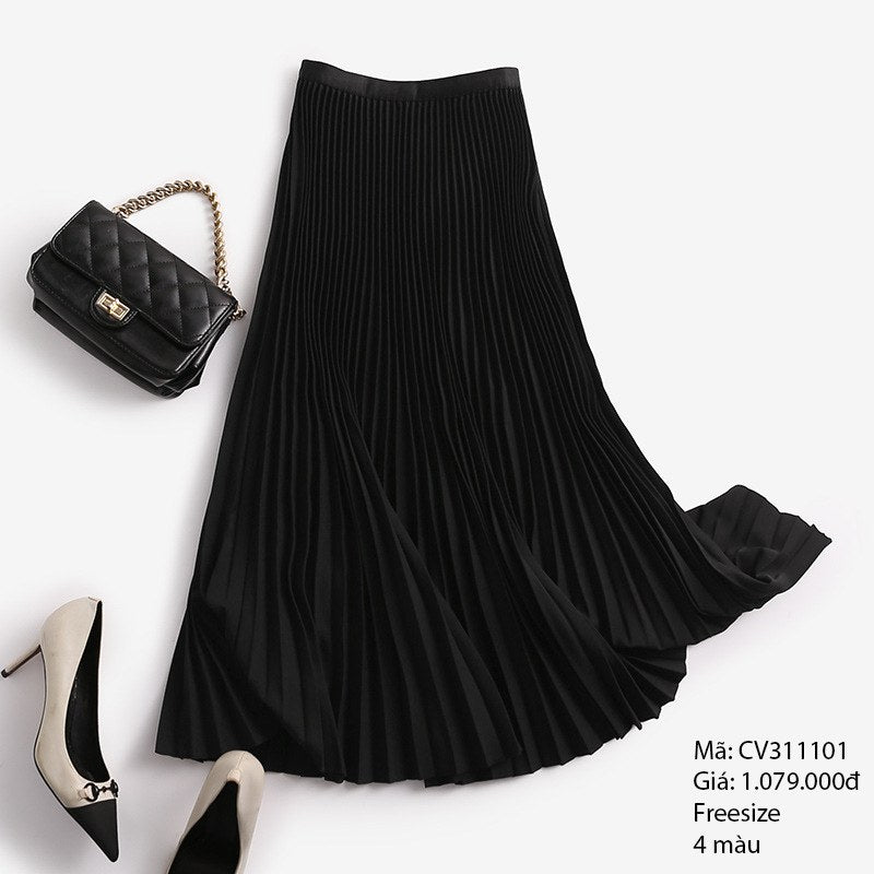 Chân váy lụa xếp ly eo co giãn - CV311101