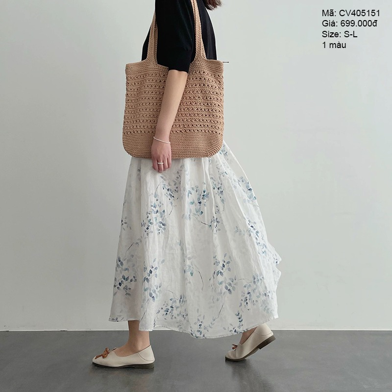 Chân váy tencel chữ A in hoa lá - CV405151