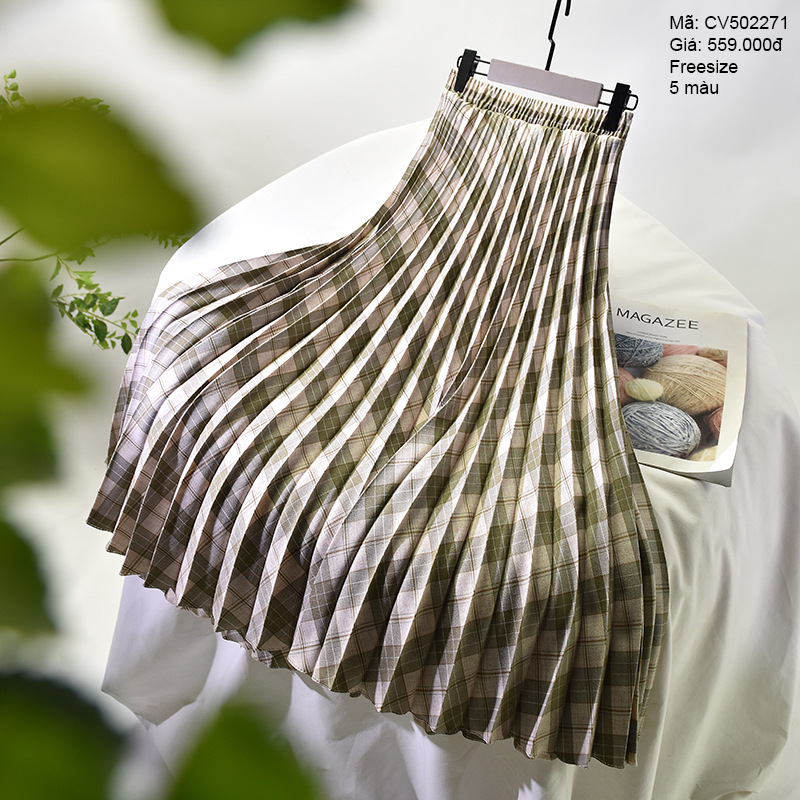 Chân váy xếp ly form chữ A kẻ sọc caro - CV502271