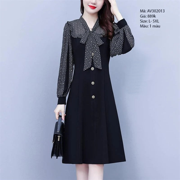 Đầm chiffon cao cấp dài tay cổ nơ - AV302013