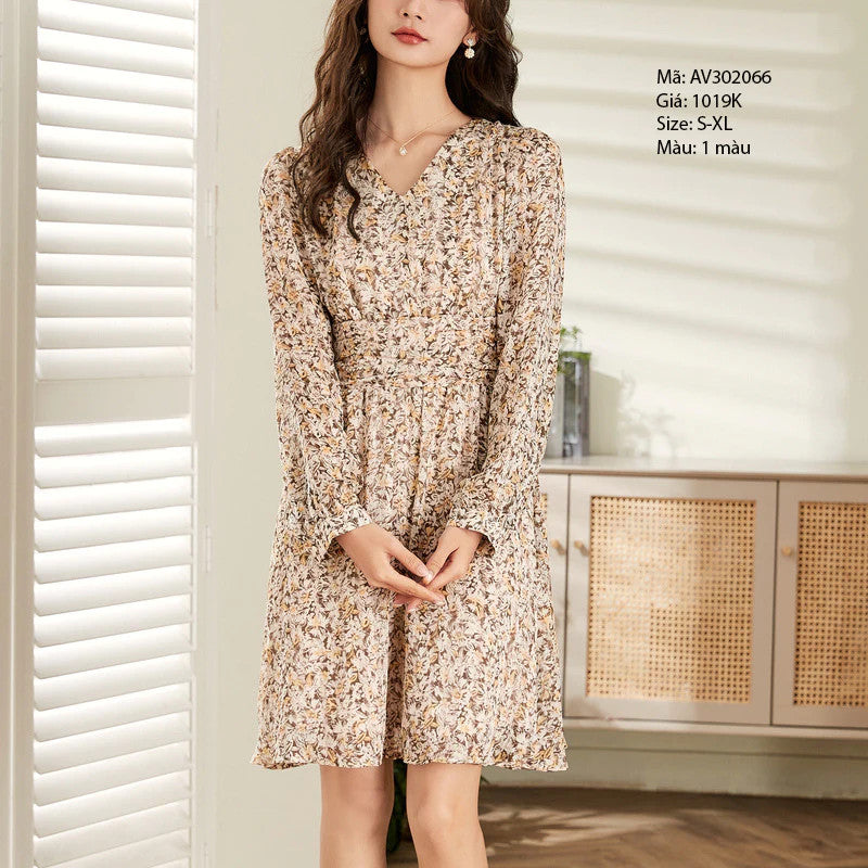 Đầm liền rayon cao cấp họa tiết hoa lá - AV304156