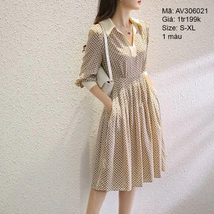 Đầm liền rayon cao cấp họa tiết hoa lá - AV304156
