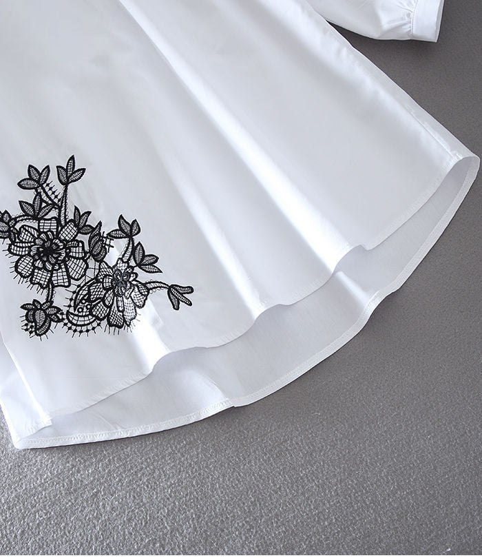 Áo sơ mi cổ tròn form dài thêu hoa - AK0235