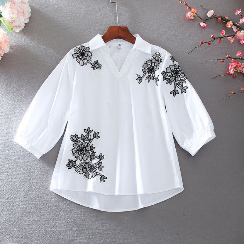 Áo sơ mi cổ V thêu hoa đào - AK0247
