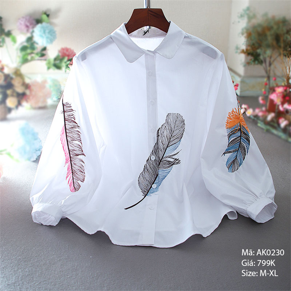 Áo sơ mi cổ đức thêu lông vũ - AK0230