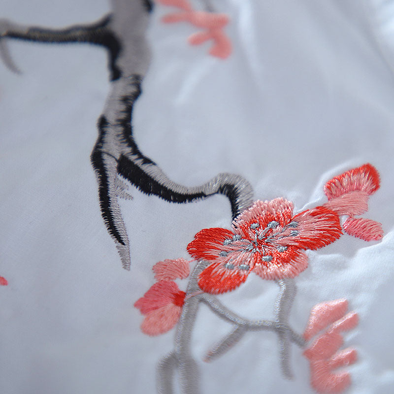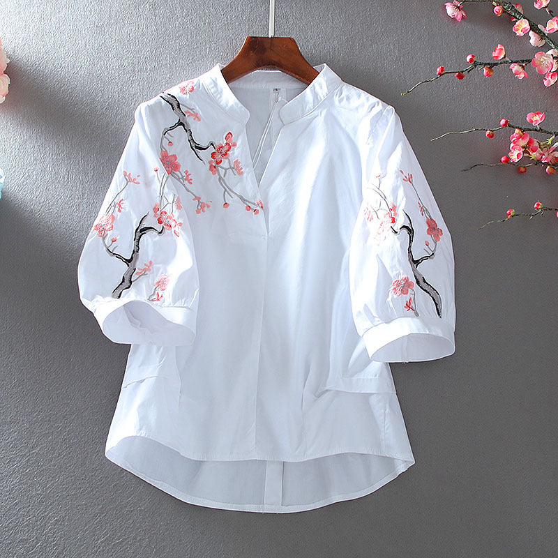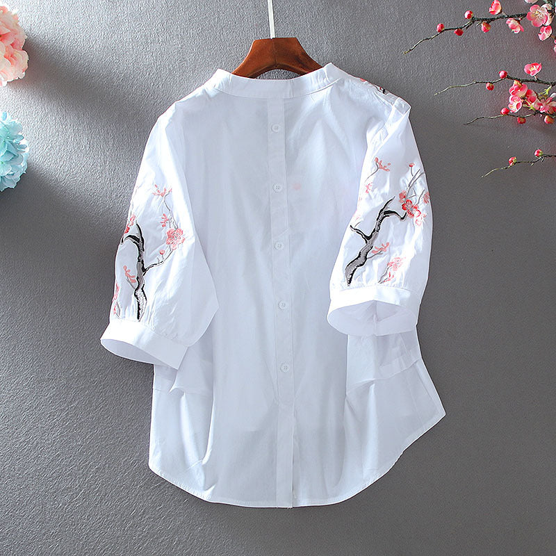 Áo sơ mi cổ V thêu hoa đào - AK0247