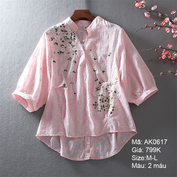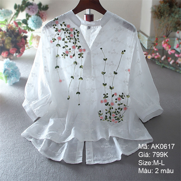 Áo sơ mi cổ đức thêu hoa - AK0236