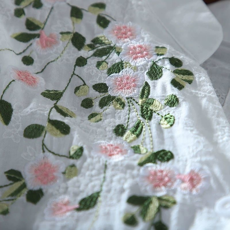 Áo sơ mi cổ tròn form dài thêu hoa - AK0235