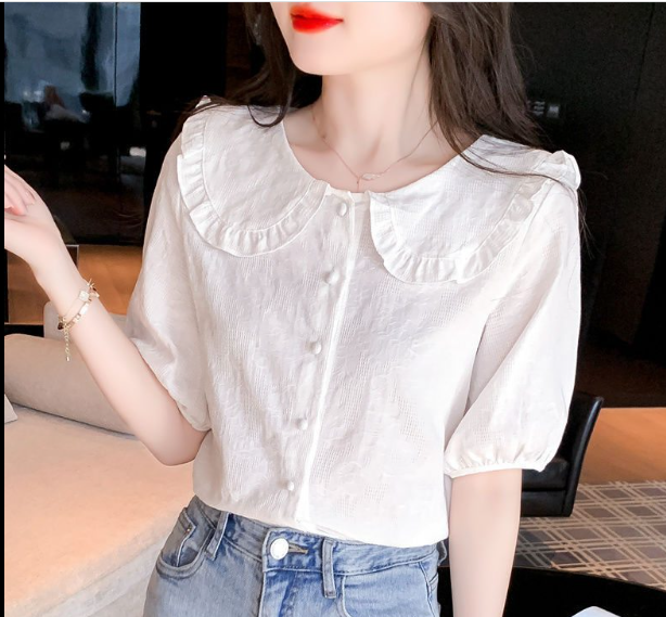 Áo sơ mi ngắn tay cổ pipi xếp ly - as402233