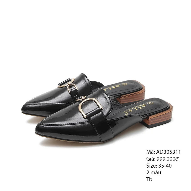 - Dép da cao cấp mũi nhọn đế gỗ - AD305311