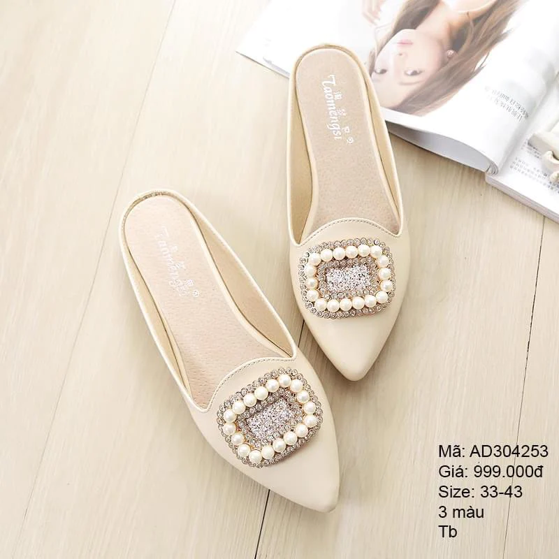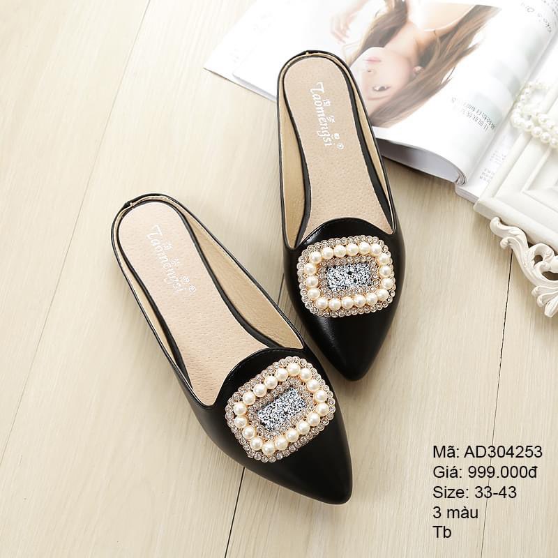 - Dép da cao cấp mũi nhọn đính đá bi tròn - AD304253