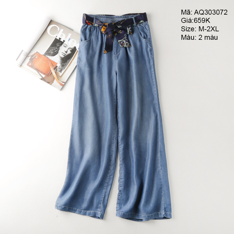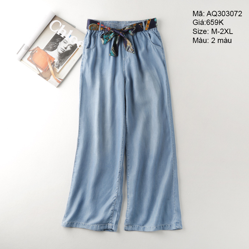 Quần baggy denim ống rộng đai thắt nơ - AQ303072