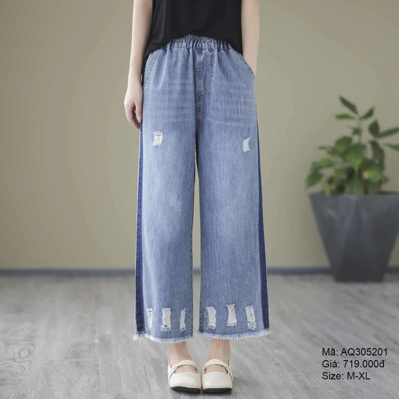 - Quần baggy denim ống xước gấu tua rua- AQ305201