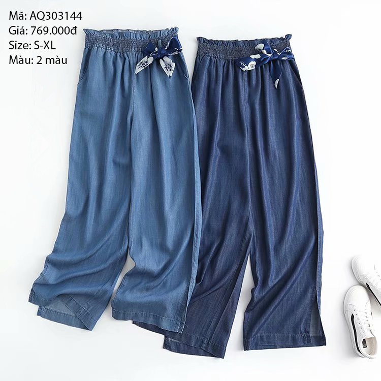 - Quần baggy denim đính nơ ống xẻ - AQ303144