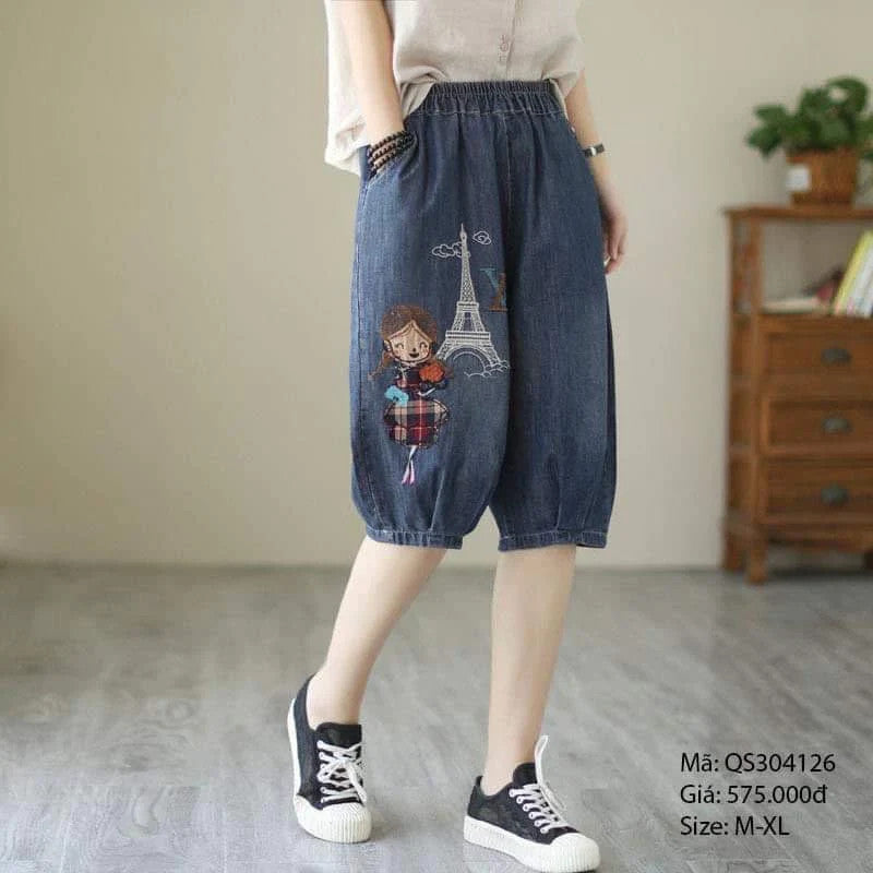 Quần sooc denim thêu cô gái - QS304122 Chất liệu Denim TOÀN BỘ SẢN PHẨM CỦA AKAY LÀ HÀNG ORDER KHÁCH HÀNG ĐẶT HÀNG VUI LÒNG CHỜ NHẬN HÀNG SAU 12 - 15 NGÀY