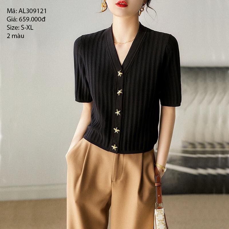 - Áo len dệt kim ngắn tay khuy sao - AL309121