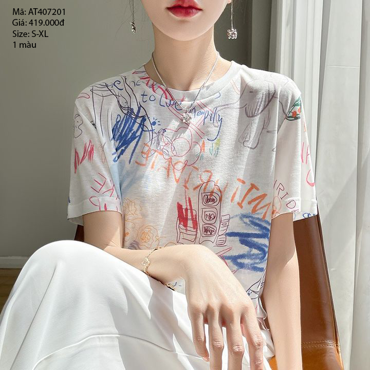 - Áo thun cổ tròn ngắn tay in chữ -AT407201