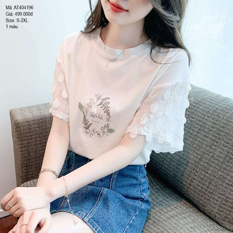- Áo thun cổ tròn ngắn tay in hoa lá - AT404196