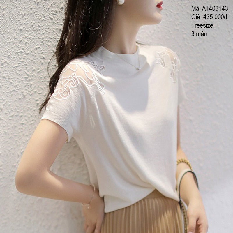 Áo thun cổ tròn tay ống tay ren - AT403143