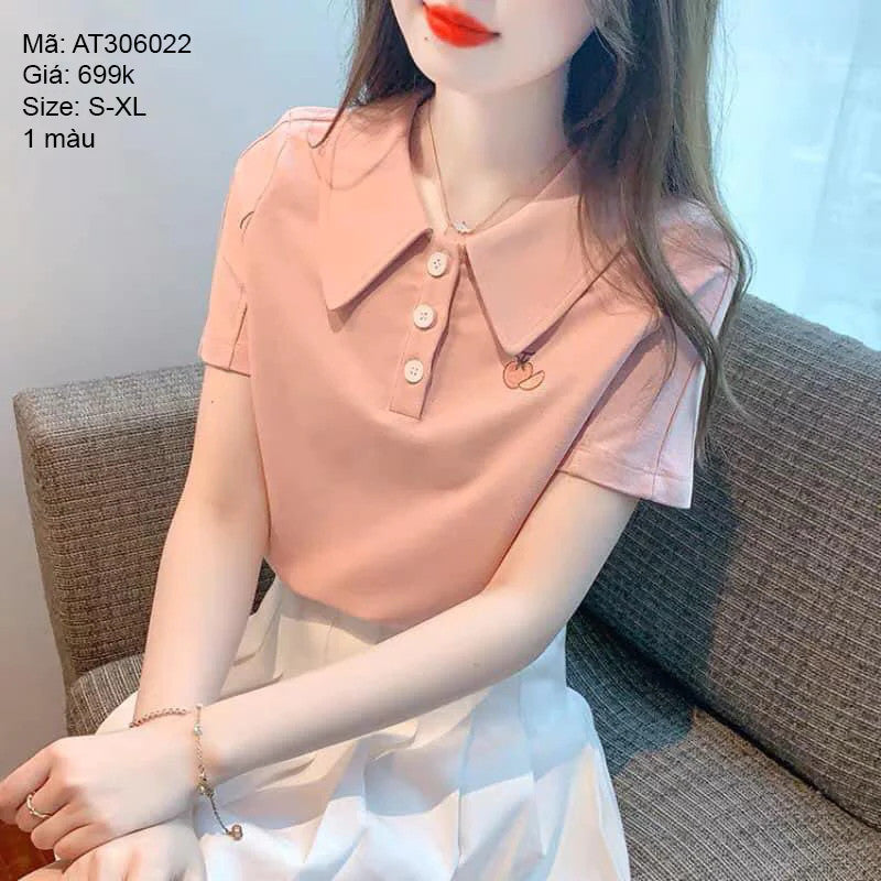 - Áo thun ngắn tay cổ bẻ thêu cam - AT306022