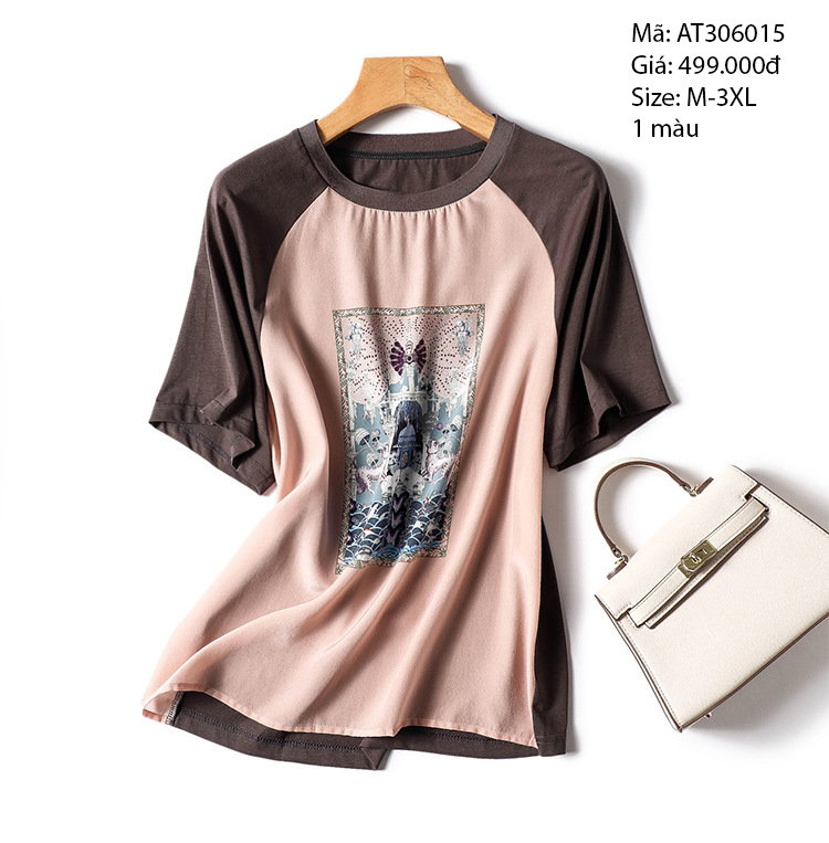 - Áo thun ngắn tay cổ tròn họa tiết trừu tượng - AT306015