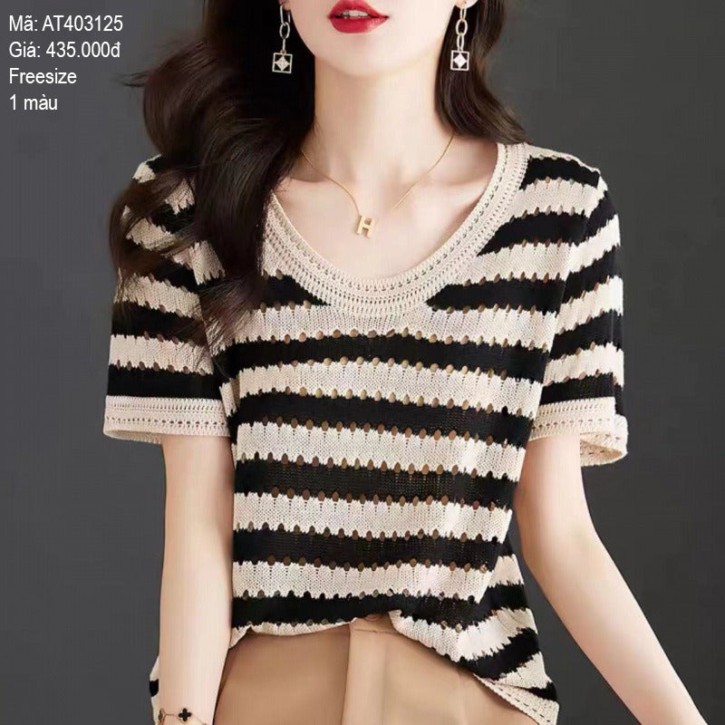 - Áo Tshirt ngắn tay kẻ sọc ngang cổ tròn - AT403125