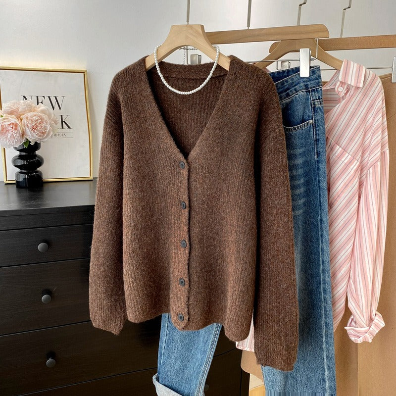 - Khoác len dài tay cổ tim có khuy cài - AK310272