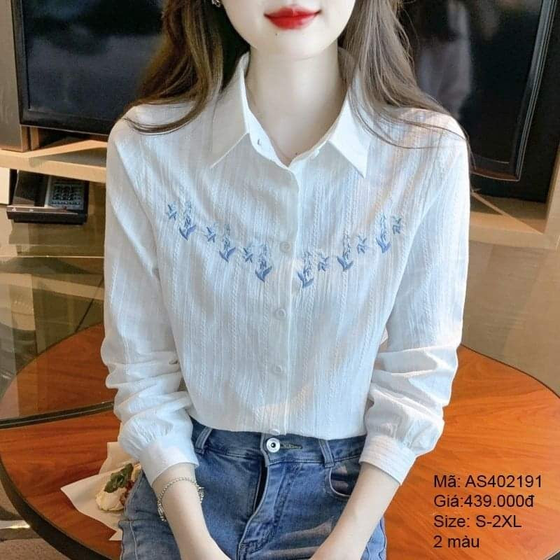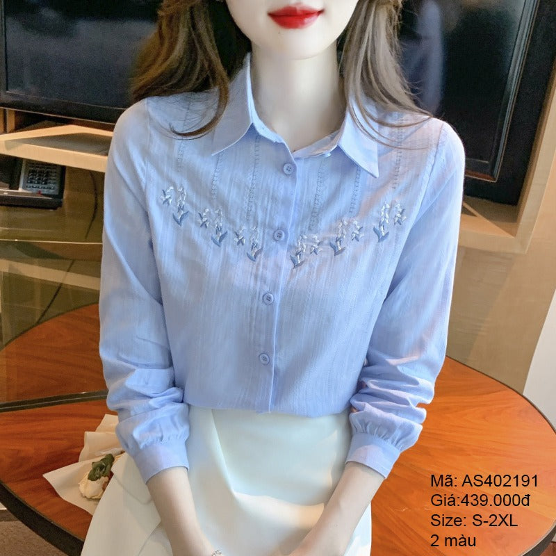 Áo sơ mi cổ bẻ dài tay thêu hoa - AS402191