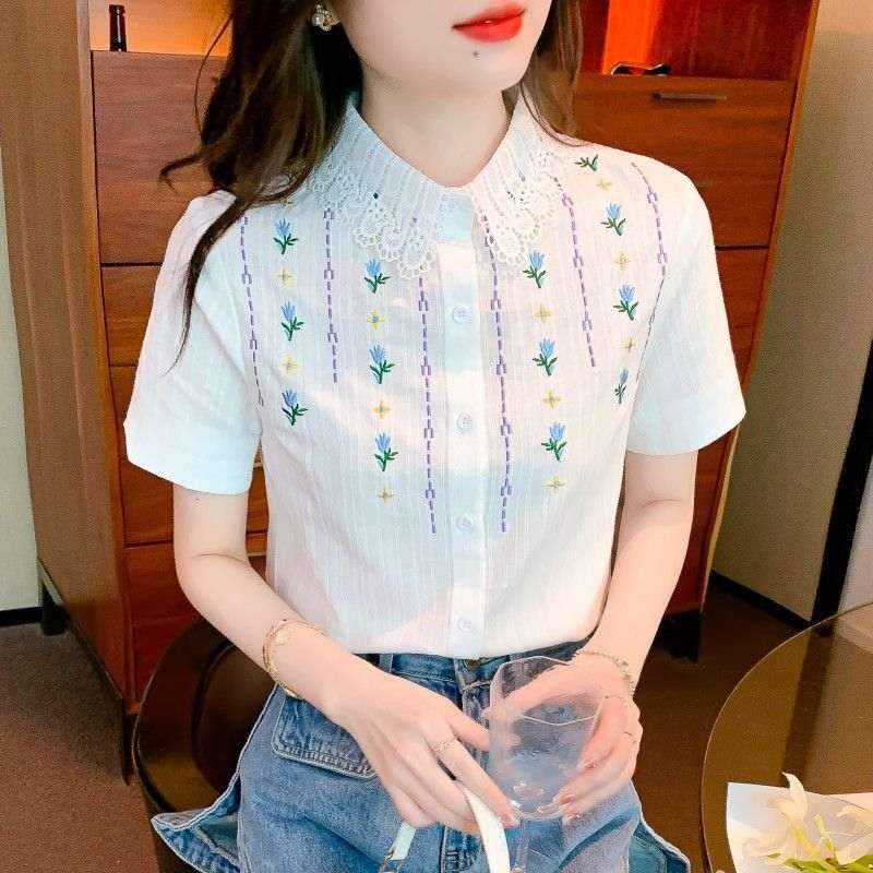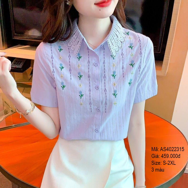 Áo sơ mi ngắn tay cổ ren - AS402235 Chất liệu cotton TOÀN BỘ SẢN PHẨM CỦA AKAY LÀ HÀNG ORDER KHÁCH HÀNG ĐẶT HÀNG VUI LÒNG CHỜ NHẬN HÀNG SAU 12 - 15 NGÀY