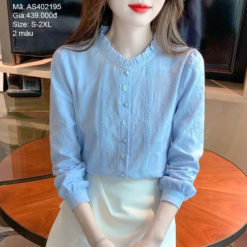 Áo sơ mi cổ xếp ly dài tay khuy kiểu - AS402195