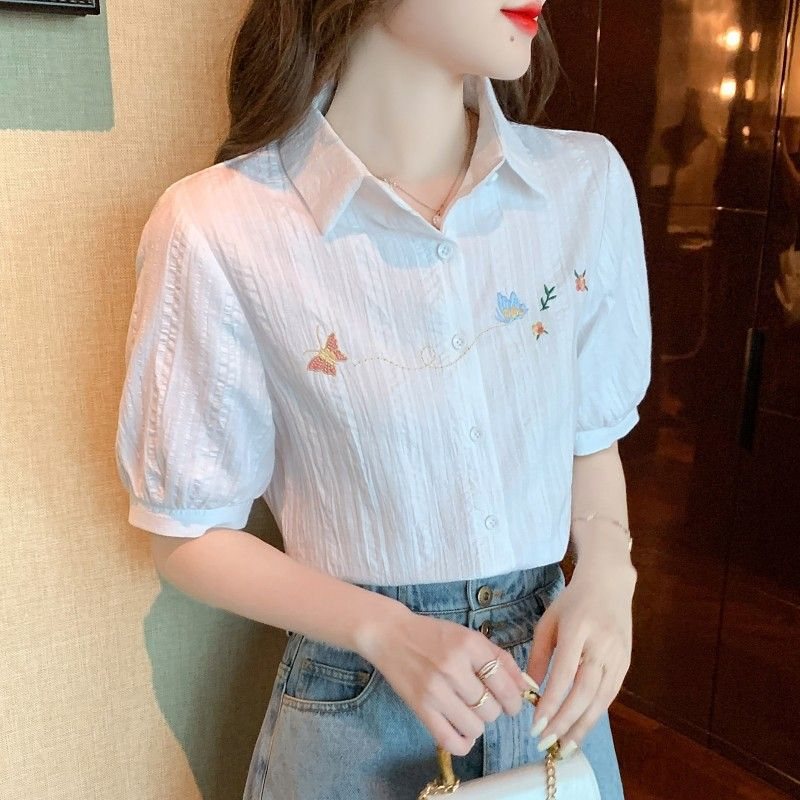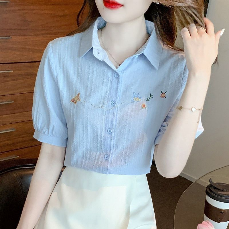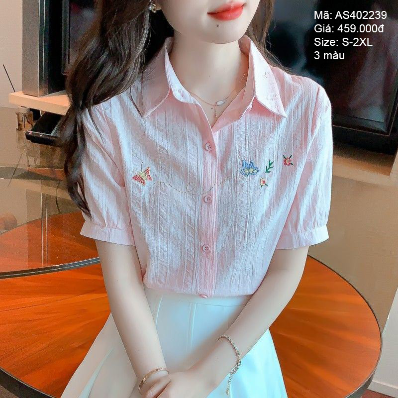 Áo sơ mi ngắn tay cổ đức thêu hoa - AS402239