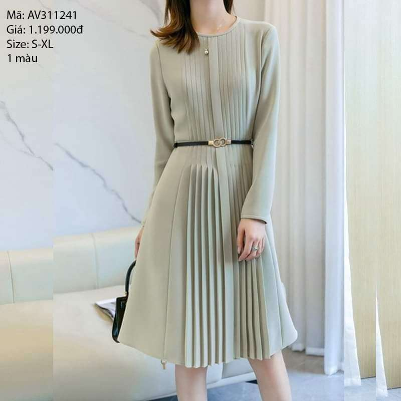 Đầm liền dài tay xếp ly -AV311241