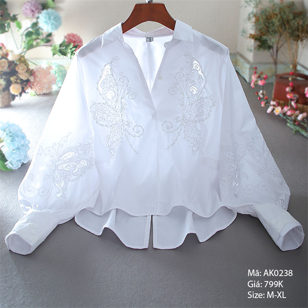 Áo sơ mi cổ đức thêu hoa - AK0236