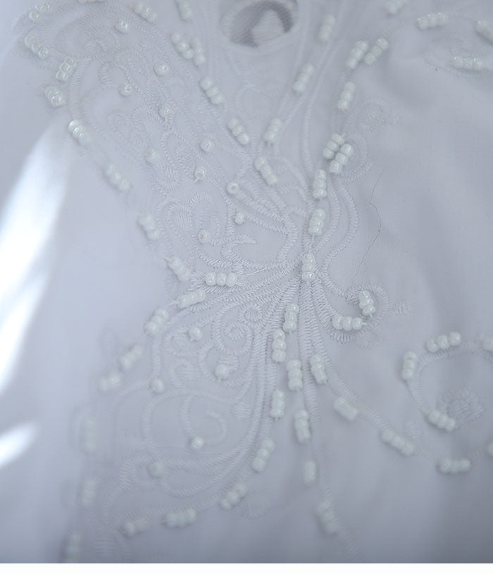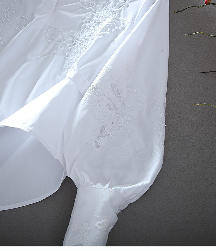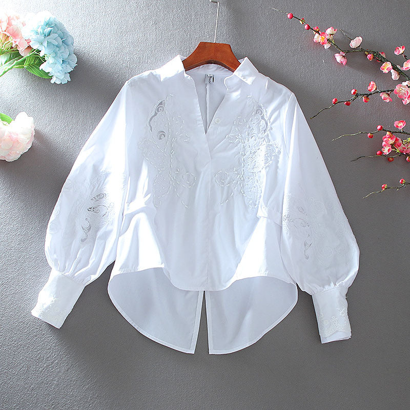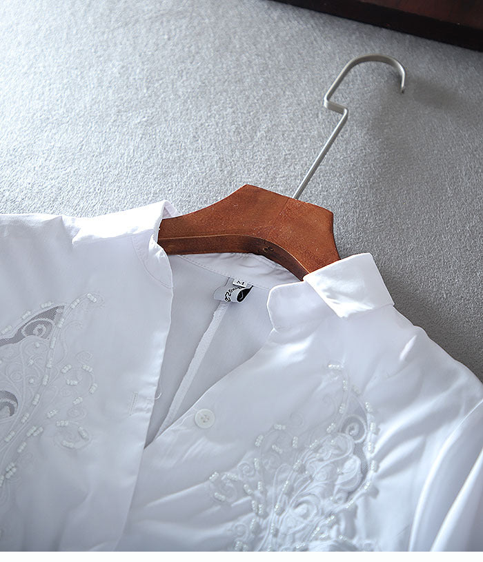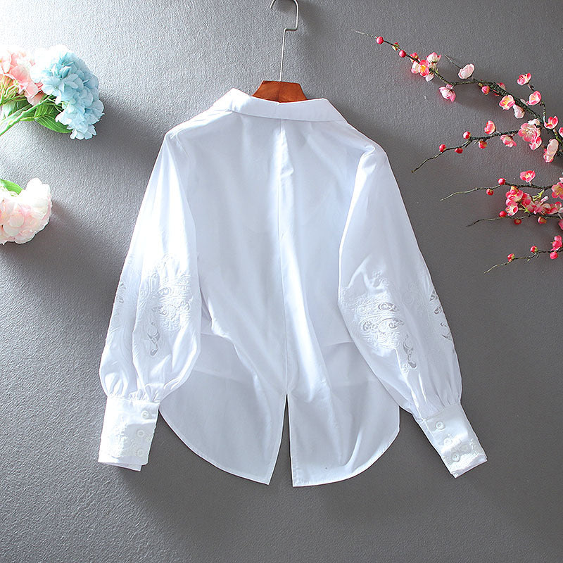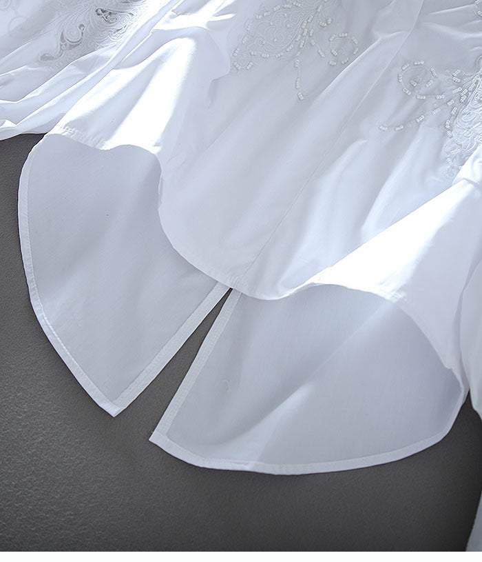 Áo sơ mi cổ tròn form dài thêu hoa - AK0235