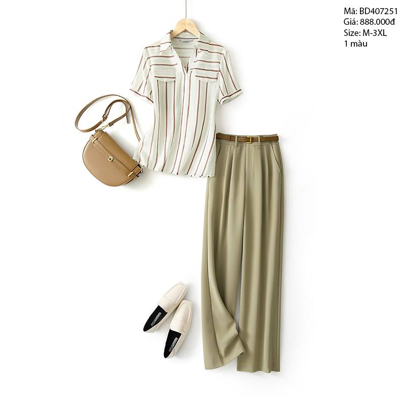 Bộ đồ gồm áo sơ mi kẻ sọc và quần ống suông - BD407251